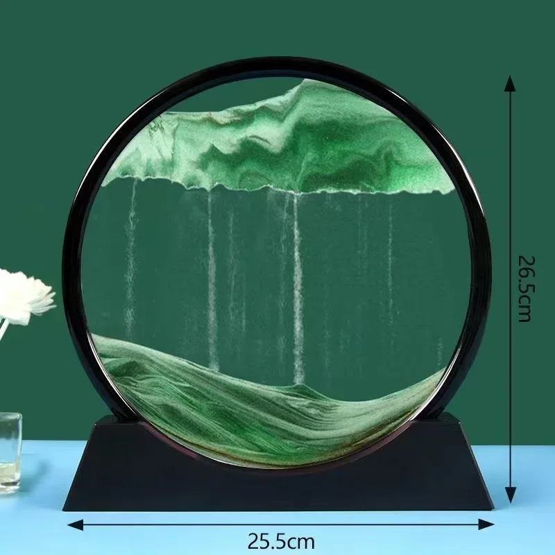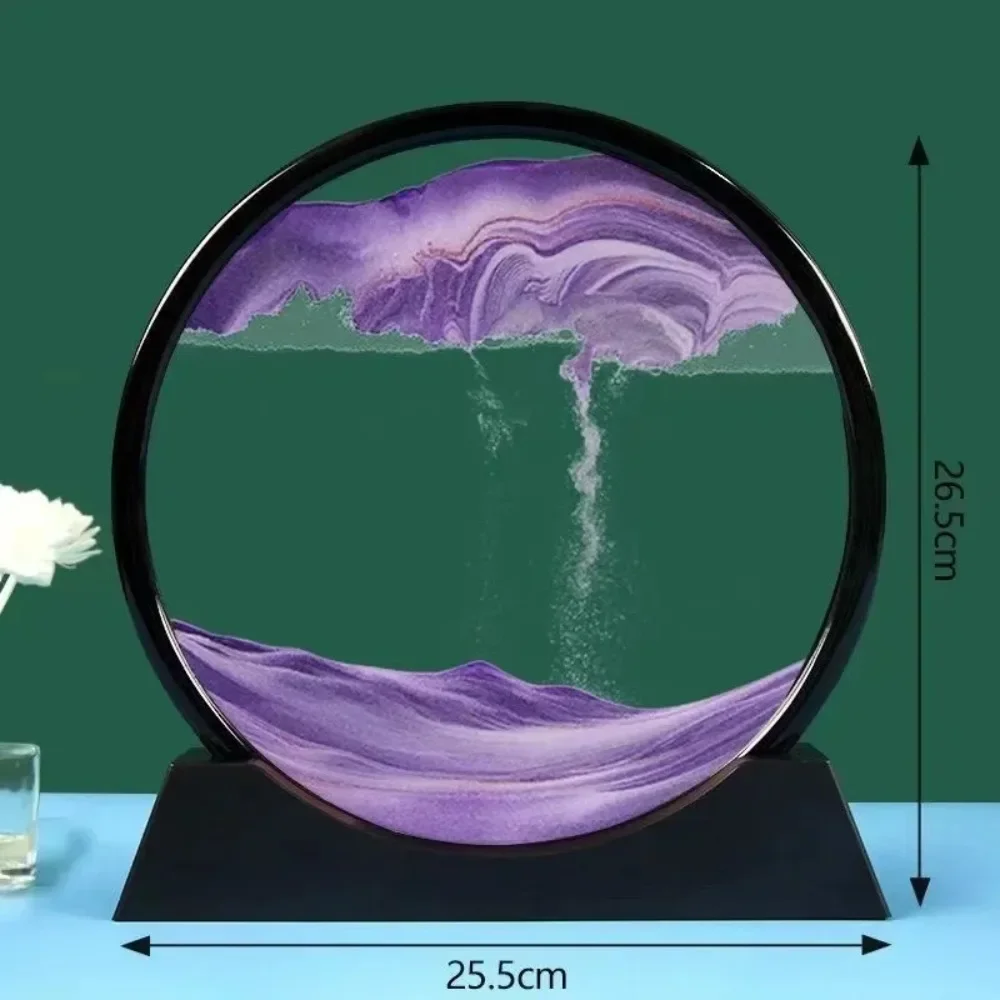 Bring beauty, relaxation, and mindfulness into any space with this mesmerizing 3D Mobile Sand Painting. Encased in a sleek round glass frame, each gentle turn creates flowing landscapes of shifting dunes, mountains, and oceans—no two scenes are ever the same.