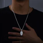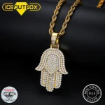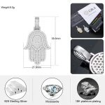 This pendant typically features a beautifully crafted design of the Hamsa hand, adorned with sparkling moissanite stones. Moissanite is a lab-created gemstone known for its brilliance and fire, closely resembling diamonds but often more affordable. The use of moissanite in the pendant enhances its aesthetic appeal, giving it a dazzling shine that catches the light beautifully.