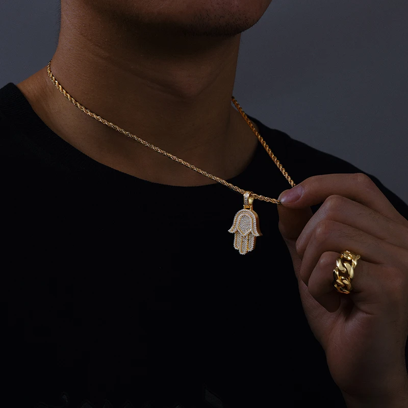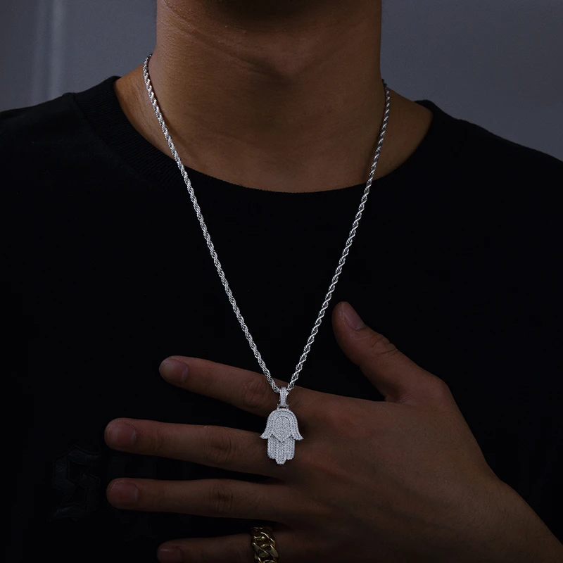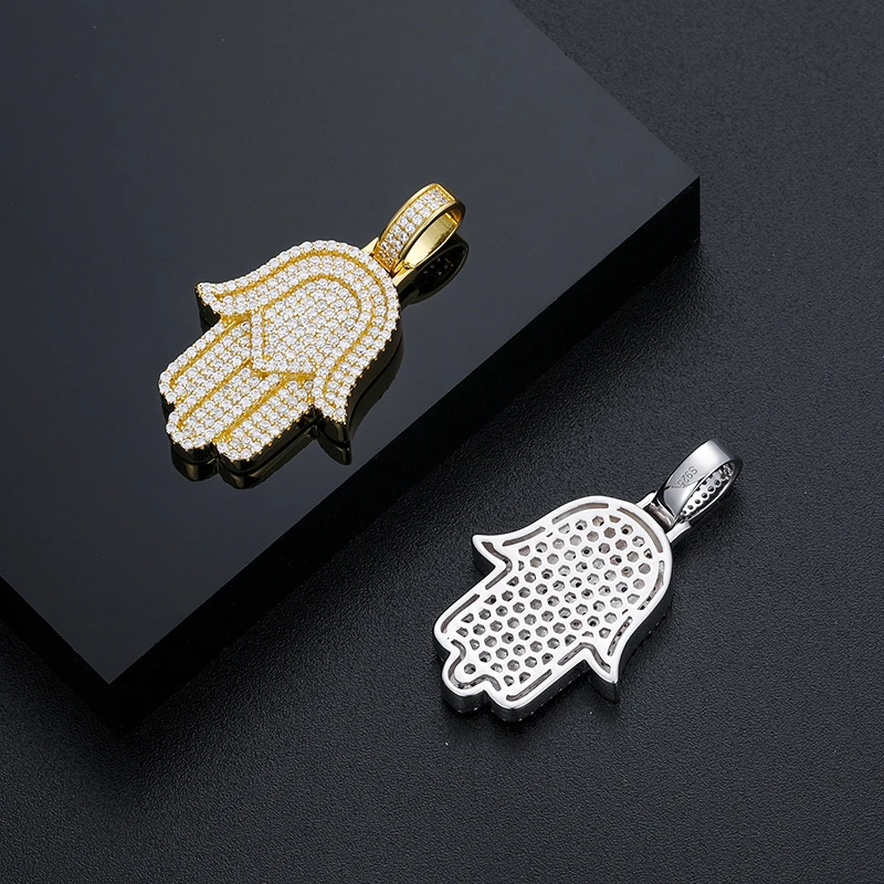A Moissanite Hamsa Hands Pendant is a stunning piece of jewelry that combines elegance with deep symbolic meaning. The Hamsa hand, also known as the Hand of Fatima or the Hand of Miriam, is a widely recognized symbol in various cultures, often representing protection, good luck, and the warding off of negative energies.