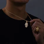 The Hamsa pendant can be worn as a statement piece or layered with other necklaces for a trendy look. It is often cherished not only for its beauty but also for its significance, making it a thoughtful gift for loved ones or a meaningful addition to one’s own jewelry collection. Whether worn for fashion or spirituality, a Moissanite Hamsa Hands Pendant serves as a lovely reminder of protection and positivity